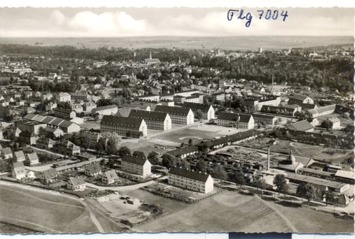 Luftaufnahme von der Saarburgkaserne aus dem Jahr 1938. Unsere Schule ist deutlich zu erkennen.