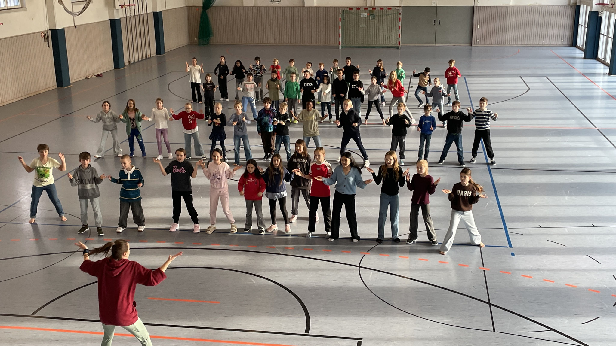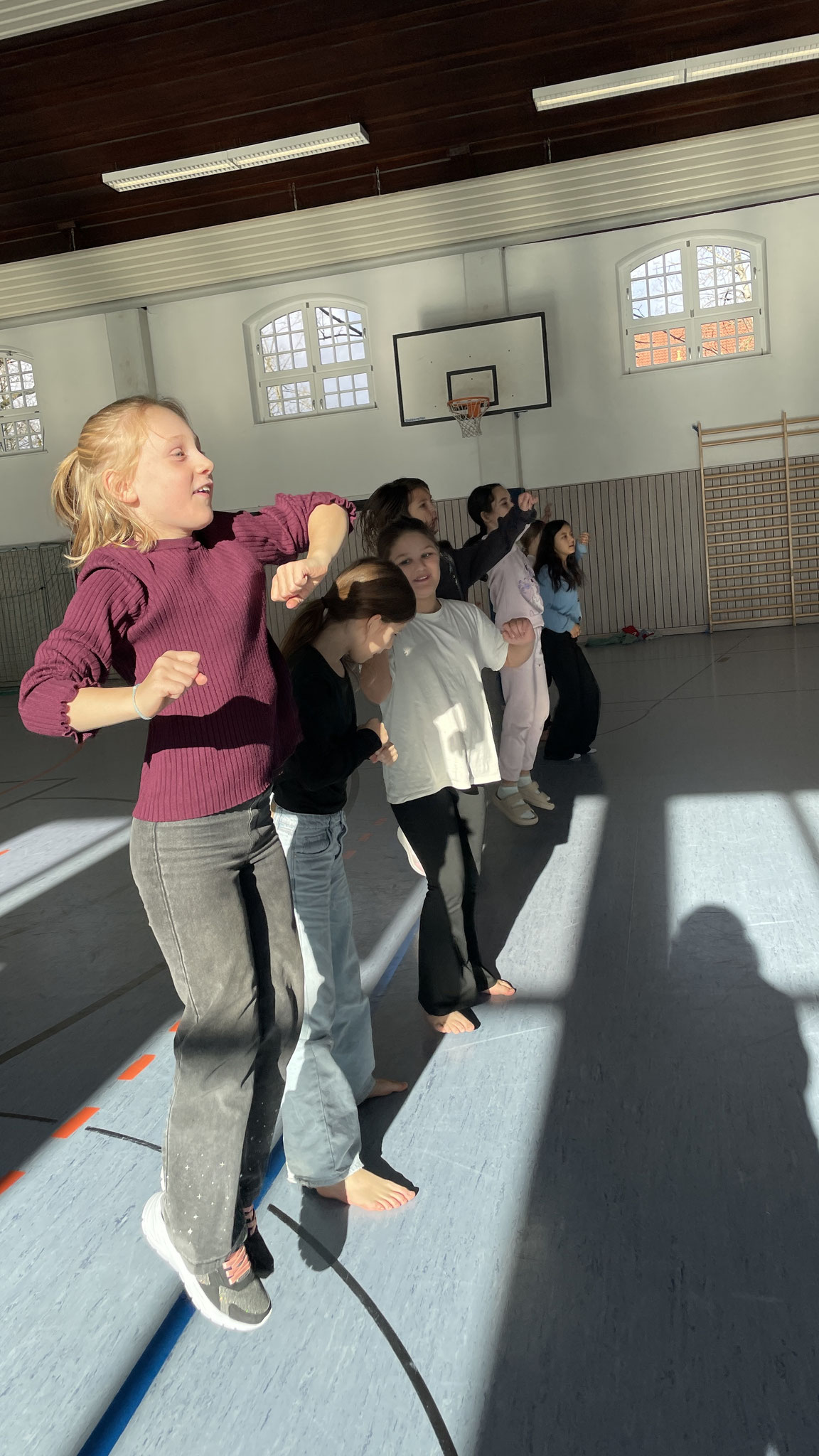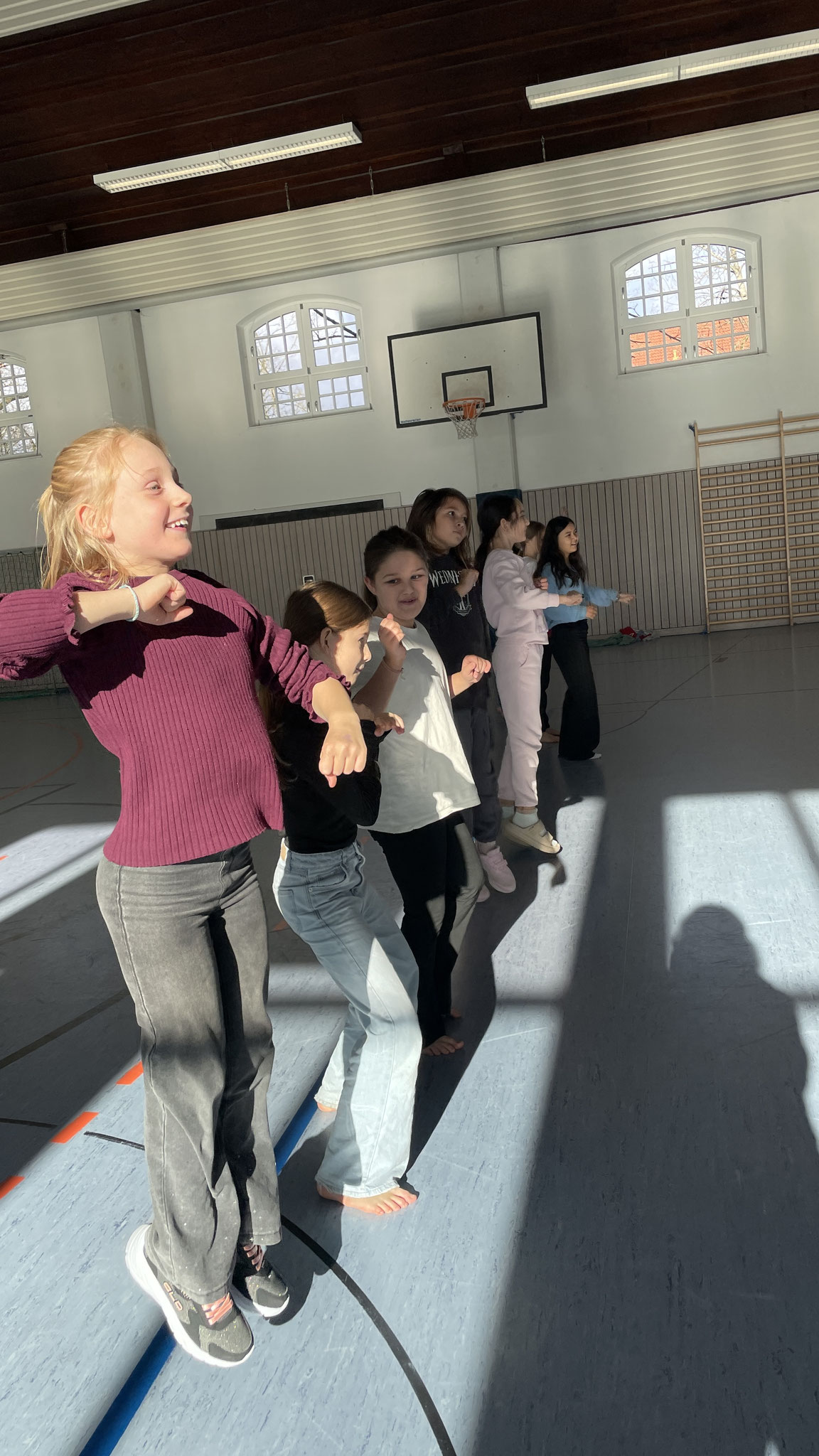 An zwei Tagen durfte jede Jahrgangsstufe 2 Stunden lang mit einer Tanzlehrerin der Tanzschule Payer moderne Tänze ausprobieren. Dabei stand die Freude an der Bewegung im Mittelpunkt. Das Projekt endete mit der gegenseitigen Vorführung der Tänze.