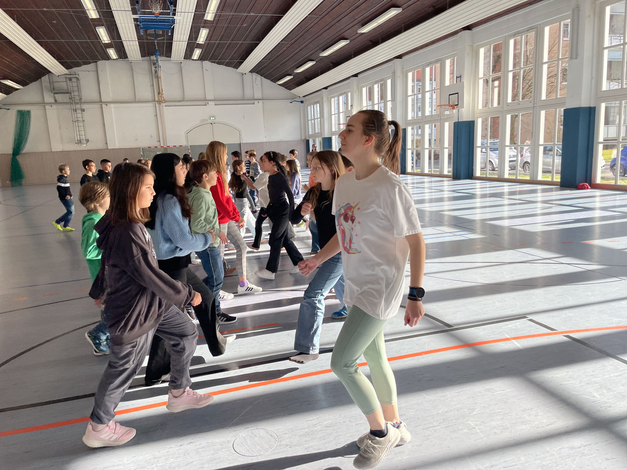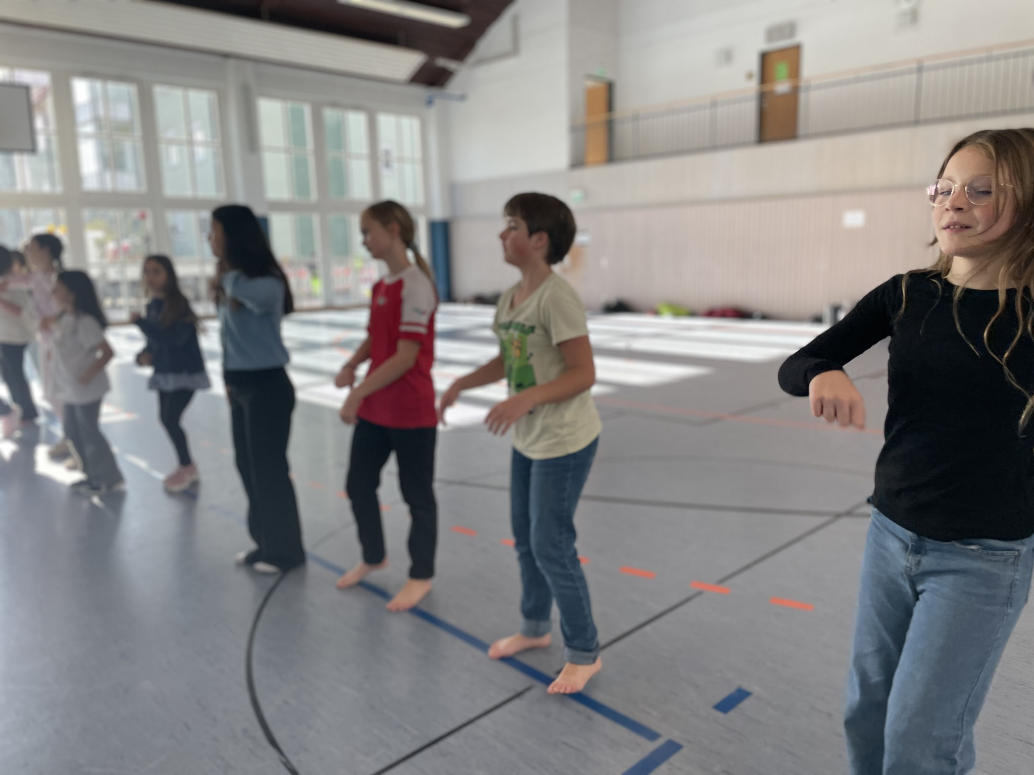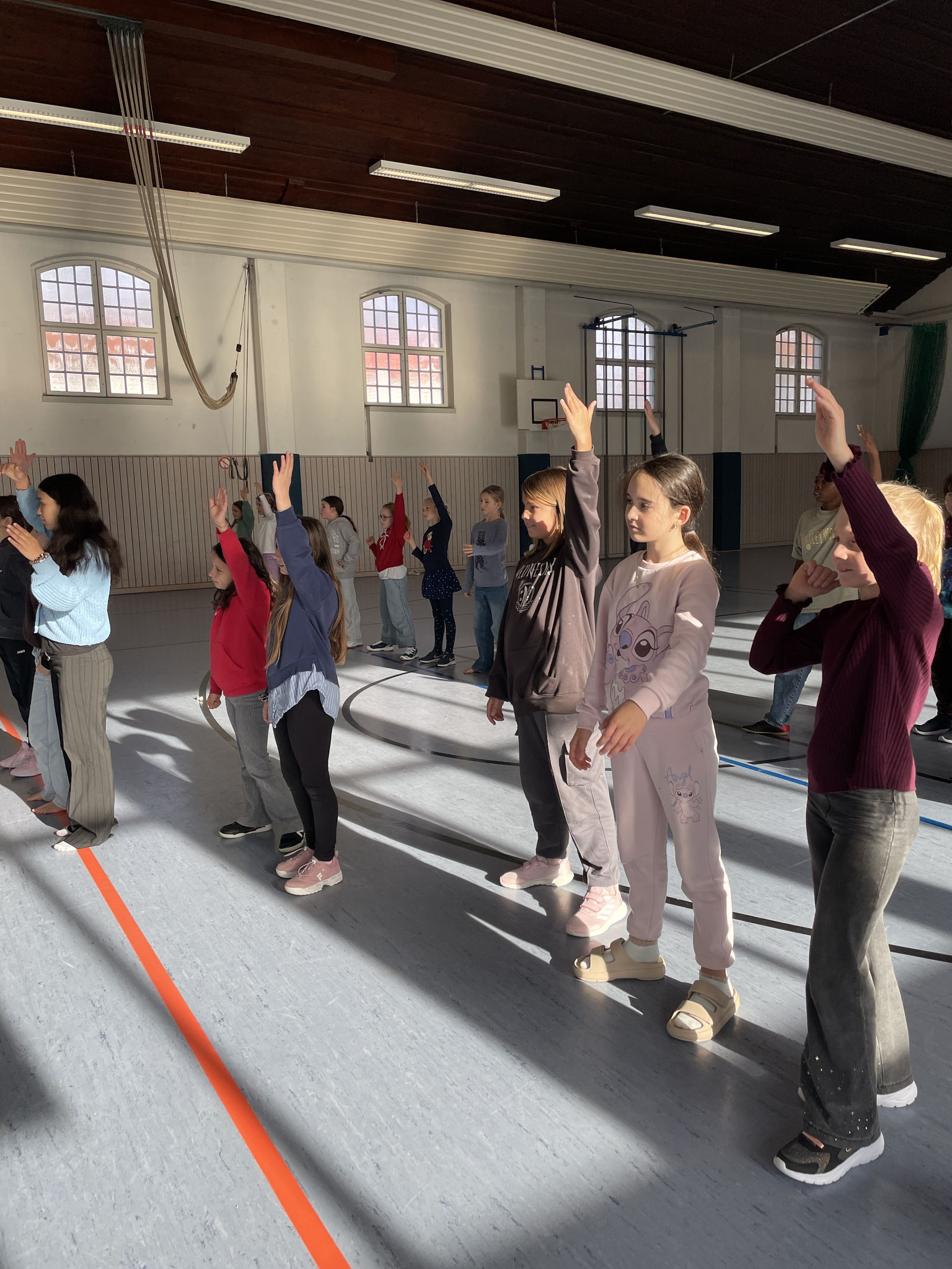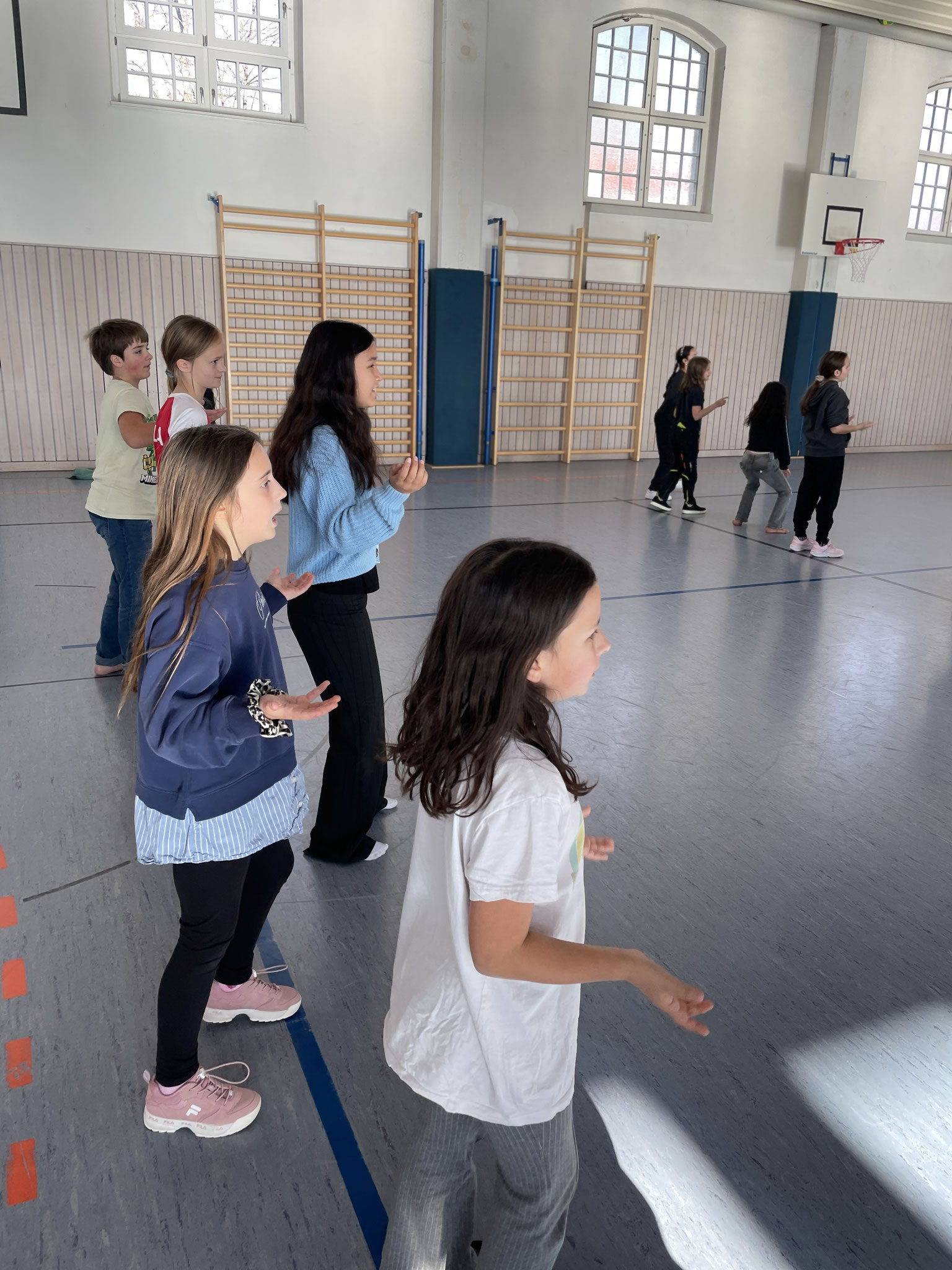 An zwei Tagen durfte jede Jahrgangsstufe 2 Stunden lang mit einer Tanzlehrerin der Tanzschule Payer moderne Tänze ausprobieren. Dabei stand die Freude an der Bewegung im Mittelpunkt. Das Projekt endete mit der gegenseitigen Vorführung der Tänze.