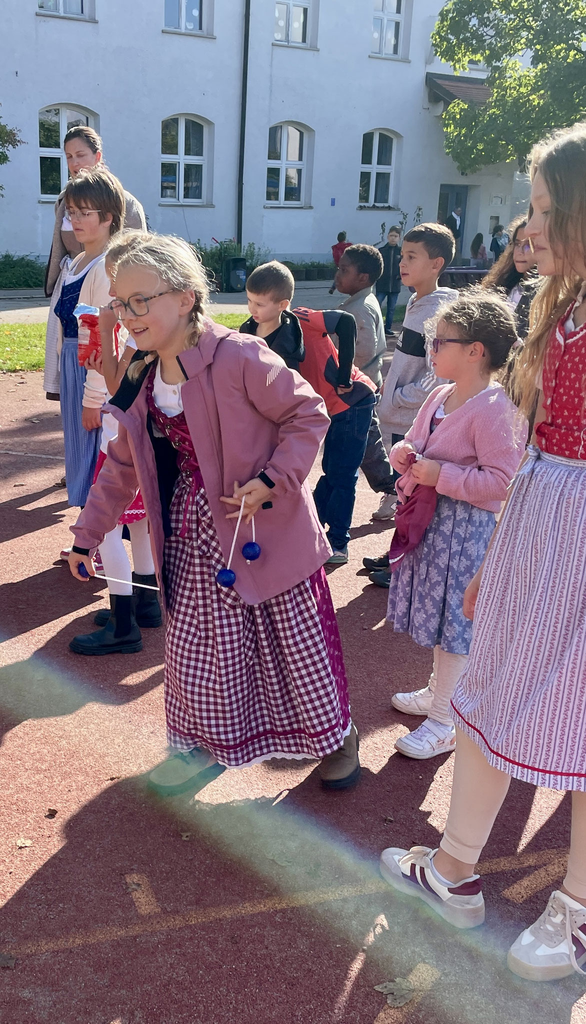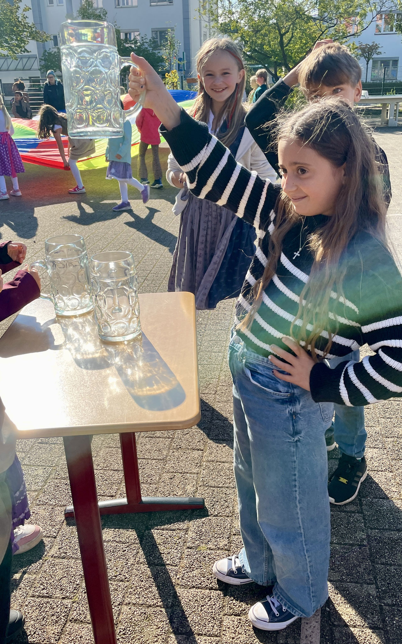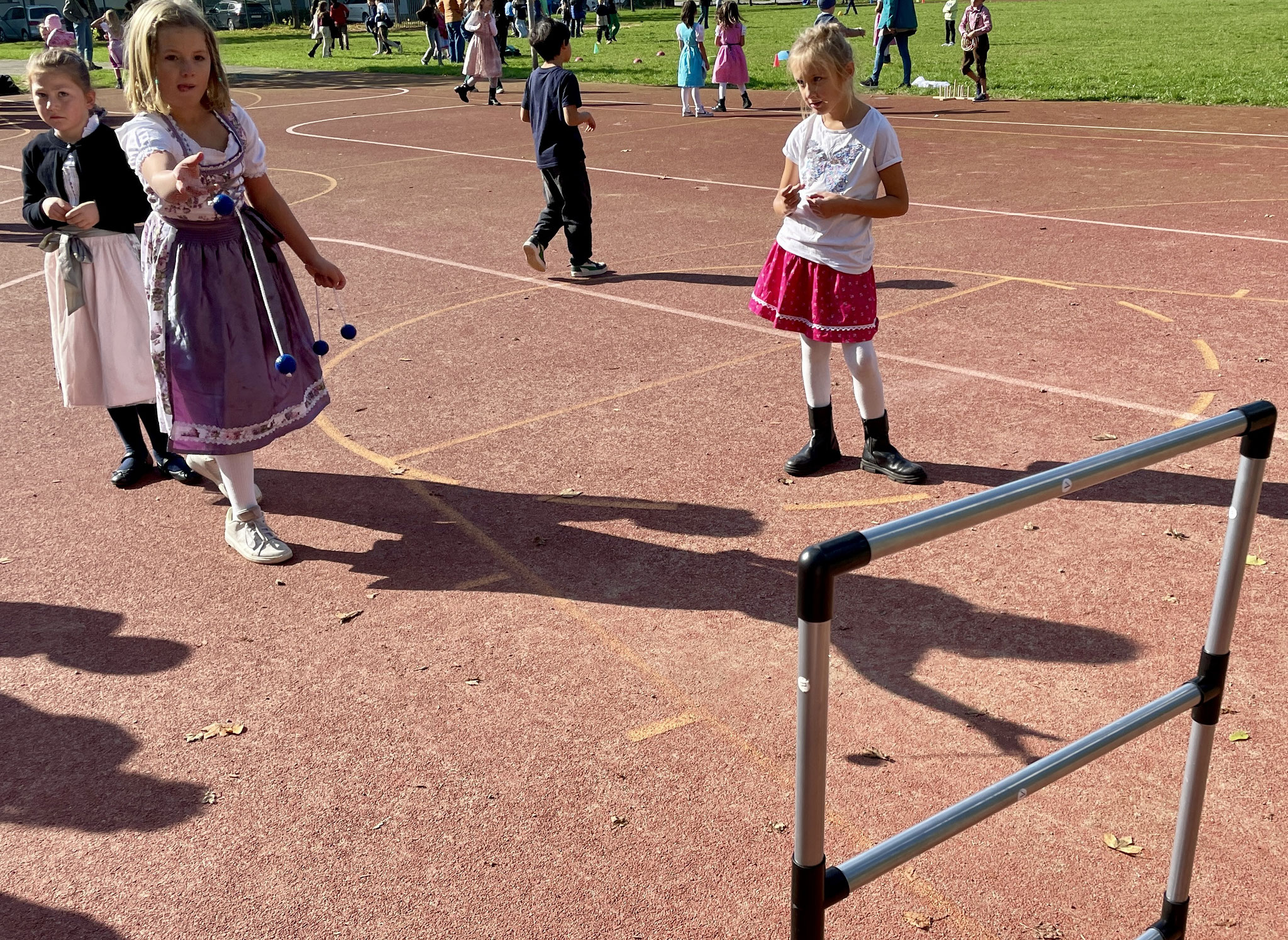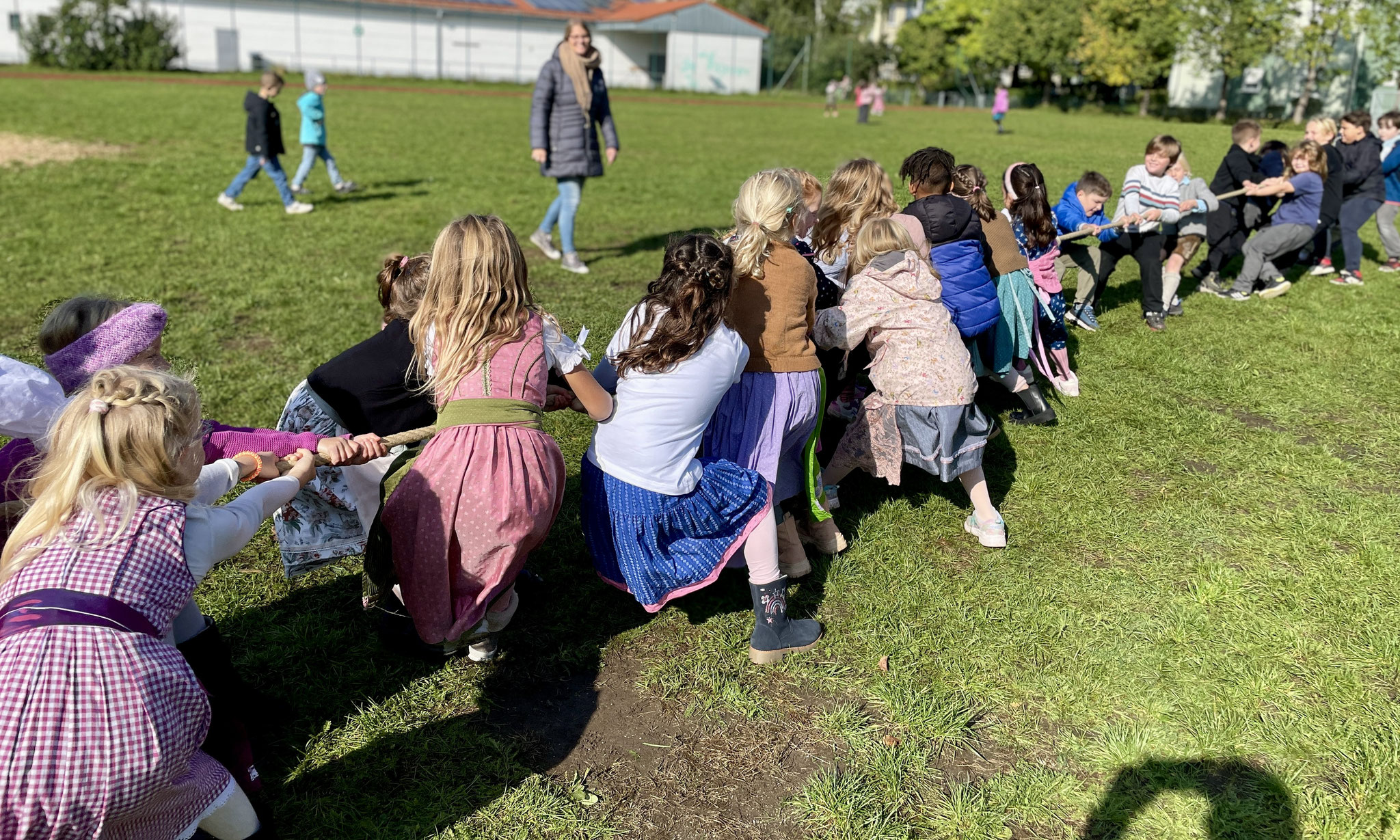 Mit zünftiger, bayerischer Musik im Hintergrund genossen unsere Kinder Spiel und Spaß an der frischen Luft. Einige Schülerinnen und Schüler sowie Lehrkräfte kamen an diesem Tag gern im Dirndl oder in der Lederhos`n zur Schule.