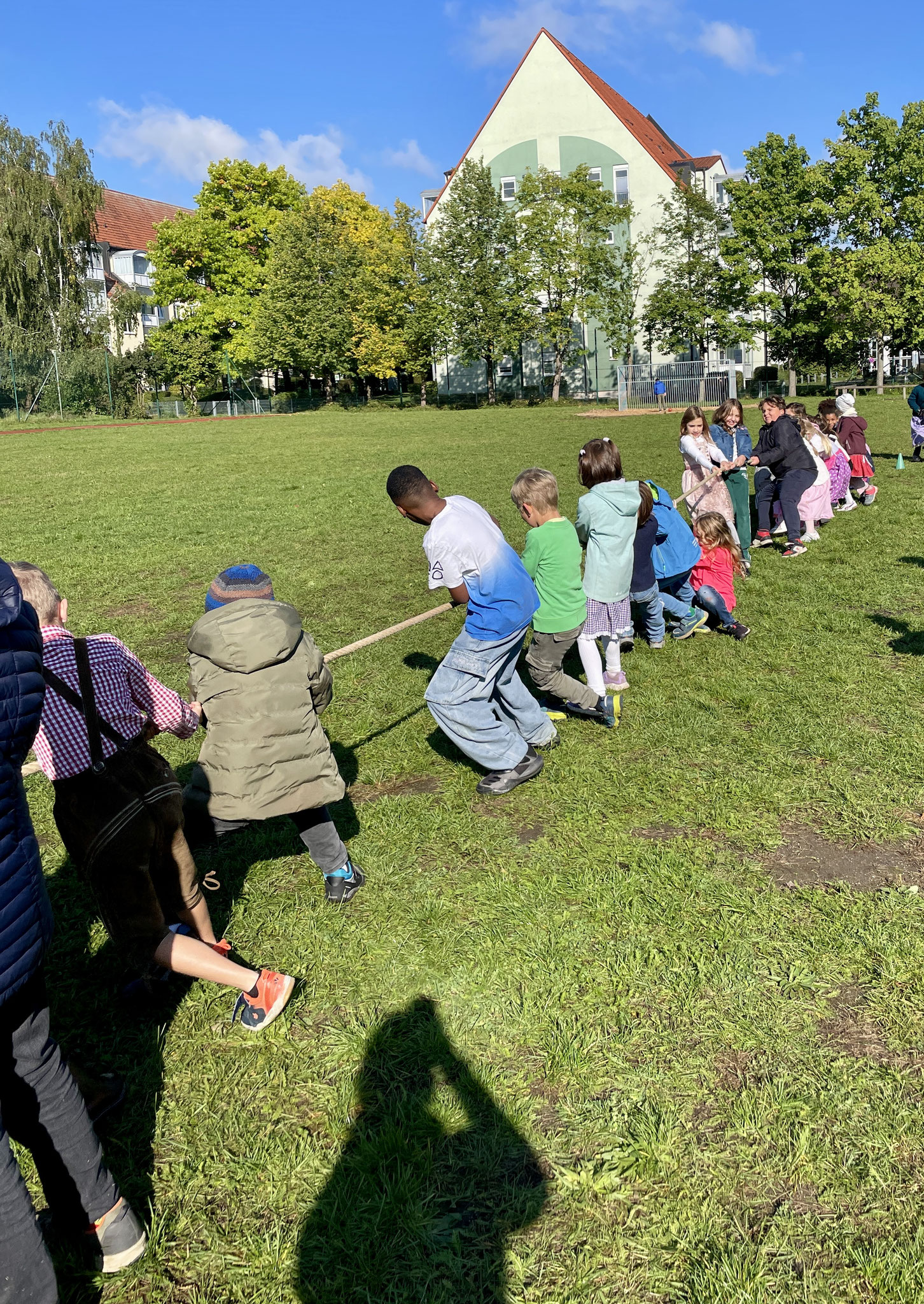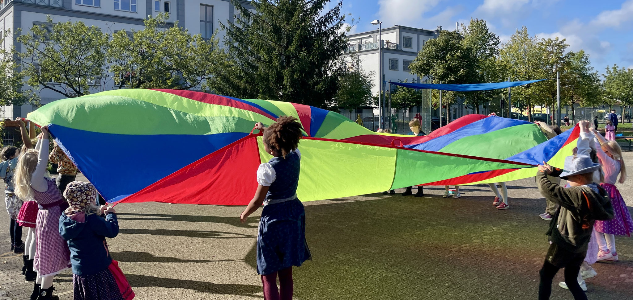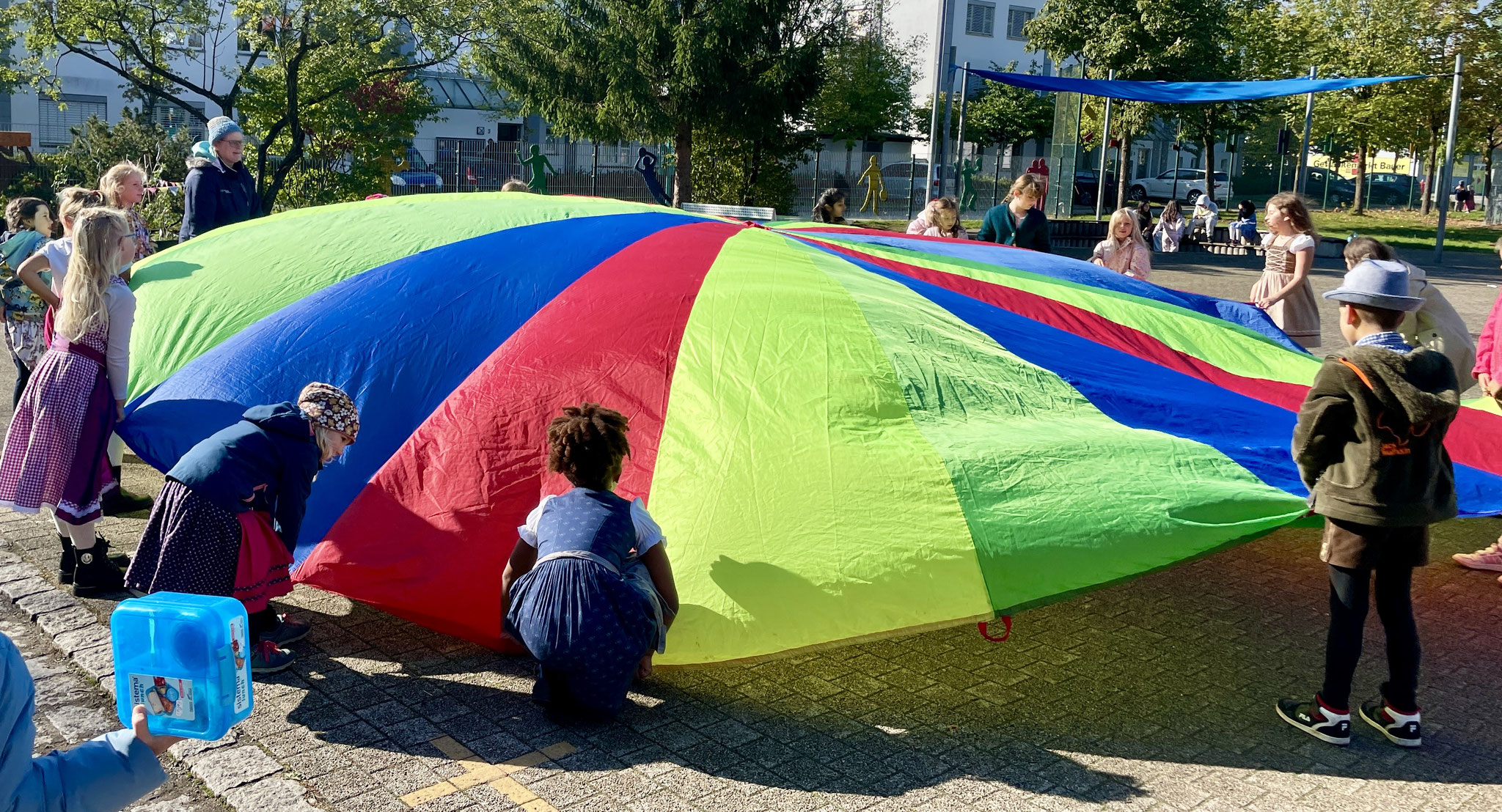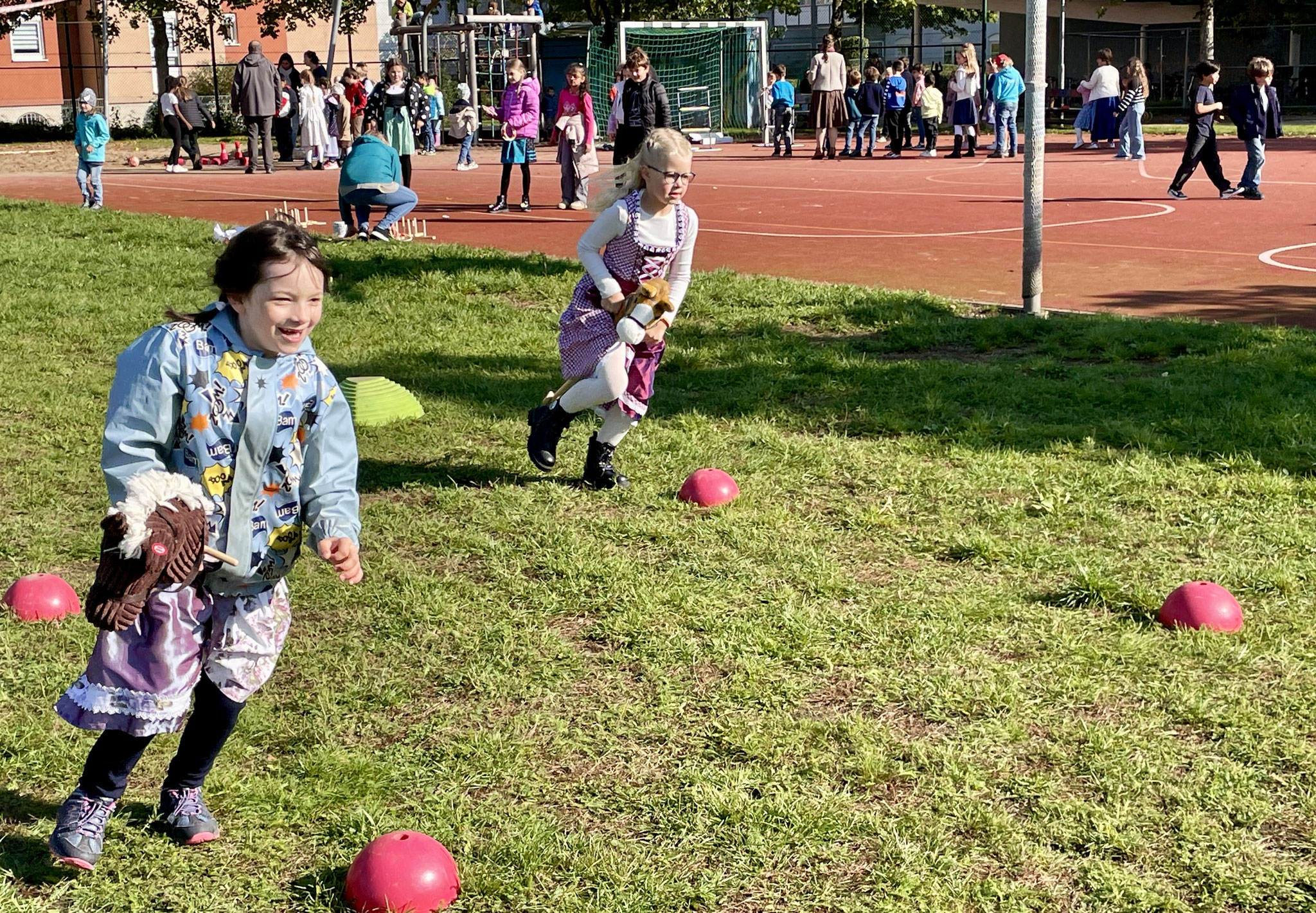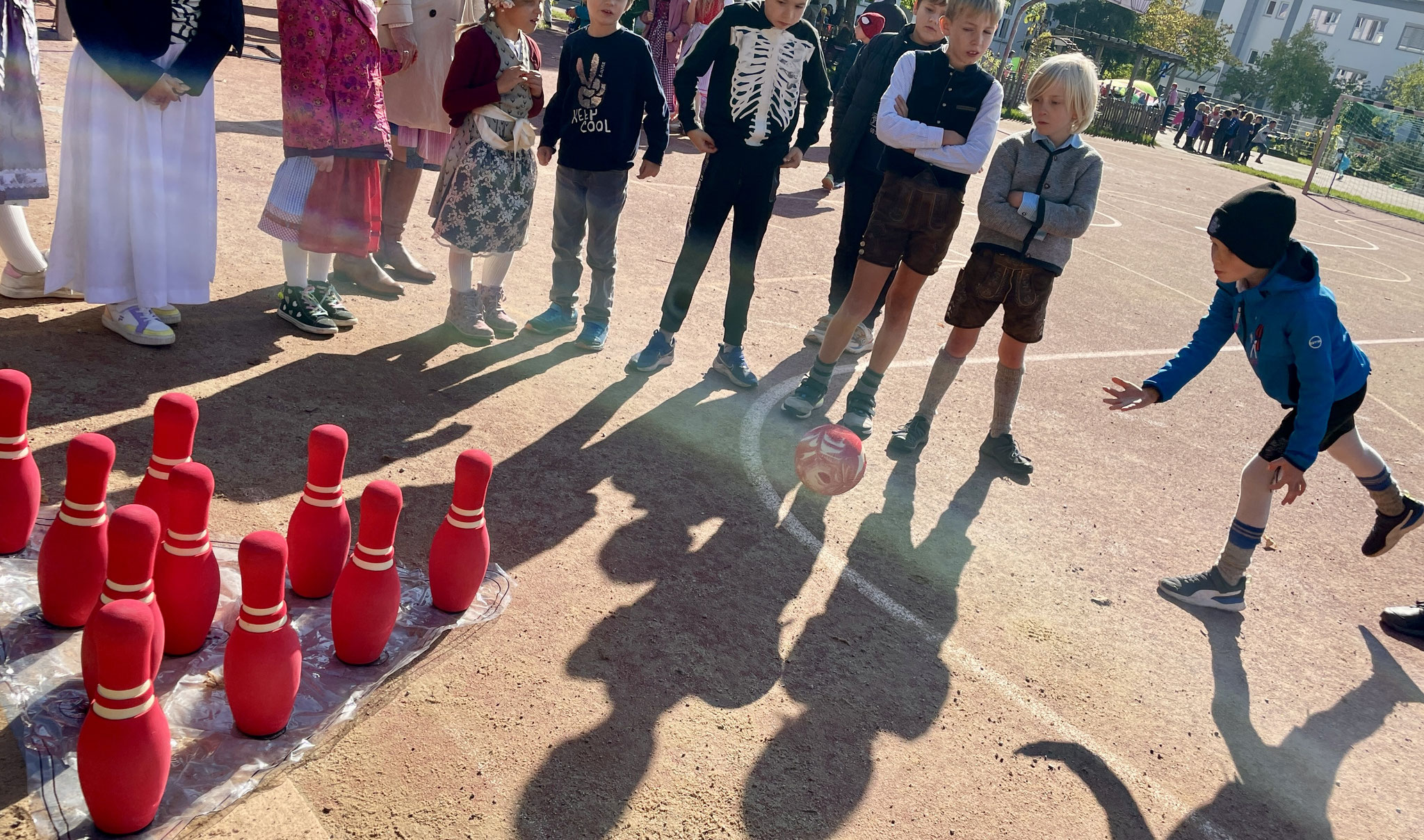 Mit zünftiger, bayerischer Musik im Hintergrund genossen unsere Kinder Spiel und Spaß an der frischen Luft. Einige Schülerinnen und Schüler sowie Lehrkräfte kamen an diesem Tag gern im Dirndl oder in der Lederhos`n zur Schule.